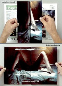 É um anúncio interativo criado pela Lowe da África do Sul para a POWA – People Opposing Women Abuse, uma ONG que luta contra o abuso contra as mulheres. Ao tentar folhear a página o leitor percebe que as folhas estão coladas e vê-se parcialmente uma imagem de pernas femininas sobre um lençol. Somente ao puxar as folhas entende-se o anúncio: uma mulher nua deitada de pernas abertas e abaixo o título: “If you have to force, it’s rape” (Se você precisa fazer força, é estupro). Muito bem bolado, causa um grande impacto!