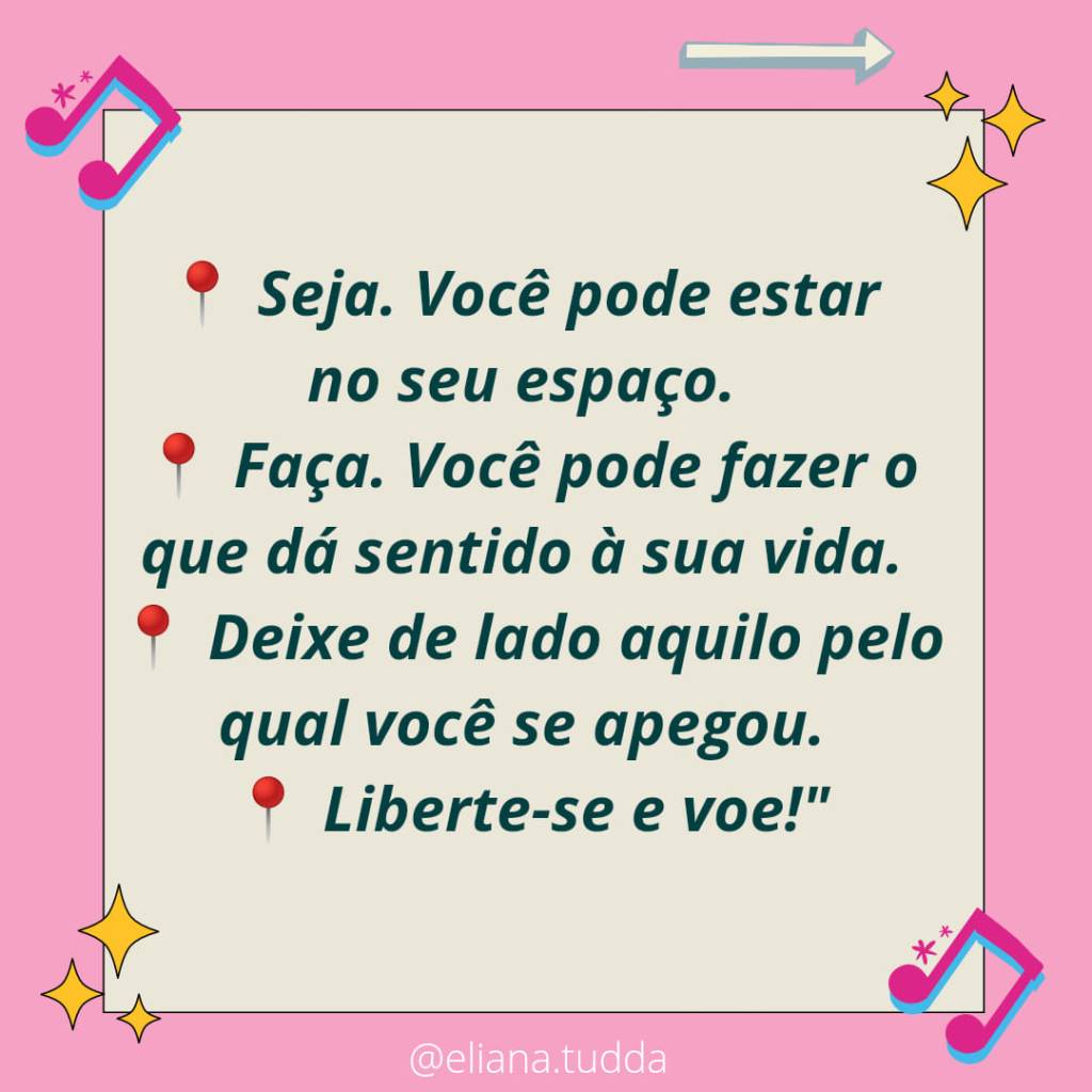 Esteja atenta e desperta, seja autêntica, ocupe o seu espaço no mundo, ocupe o seu tempo com coisas que te levem ao seu objetivo, liberte-se do que te mantém presa ao passado, ao sofrimento, ao medo, ao ressentimento, à raiva…