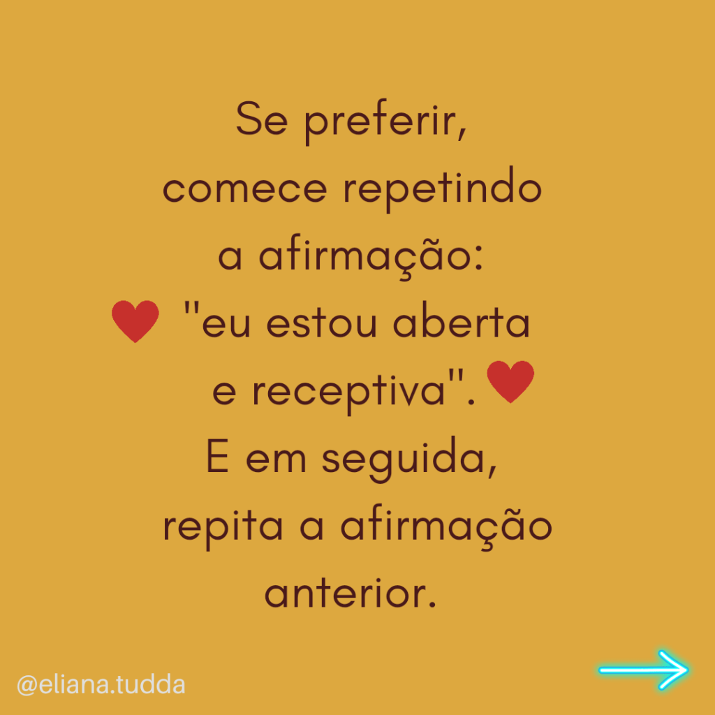 Que tal fazer esta prática a partir de hoje? Comece declarando o seu amor por você mesma. Mas faça isso agora! Não deixe para depois. Quanto antes você se amar, se aceitar, mais harmoniosa será a sua vida, em todos os âmbitos.