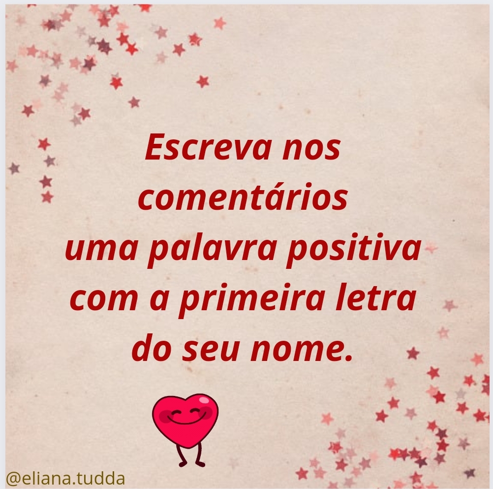 Feliz Ano Novo! 28/12/202221/07/2024 eliana.tudda Vamos brincar? ☺ Escreva nos comentários uma palavra positiva com a primeira letra do seu nome. Eliana – entusiasmo ❤️ Sua vez. 🤗 👇 Que a palavra que for escrita nos acompanhe pelos 365 dias de 2023. 🥰 Feliz Ano Novo! 💝 Eliana Tudda 🌻 Compartilhe isso:Tweet Clique para enviar um link por e-mail para um amigo(abre em nova janela) E-mail Clique para compartilhar no Telegram(abre em nova janela) Telegram Clique para compartilhar no WhatsApp(abre em nova janela) WhatsApp Clique para compartilhar no Threads(abre em nova janela) Threads Curtir Carregando... Relacionado Compartilhe isso:Tweet Clique para enviar um link por e-mail para um amigo(abre em nova janela) E-mail Clique para compartilhar no Telegram(abre em nova janela) Telegram Clique para compartilhar no WhatsApp(abre em nova janela) WhatsApp Clique para compartilhar no Threads(abre em nova janela) Threads Curtir Carregando...