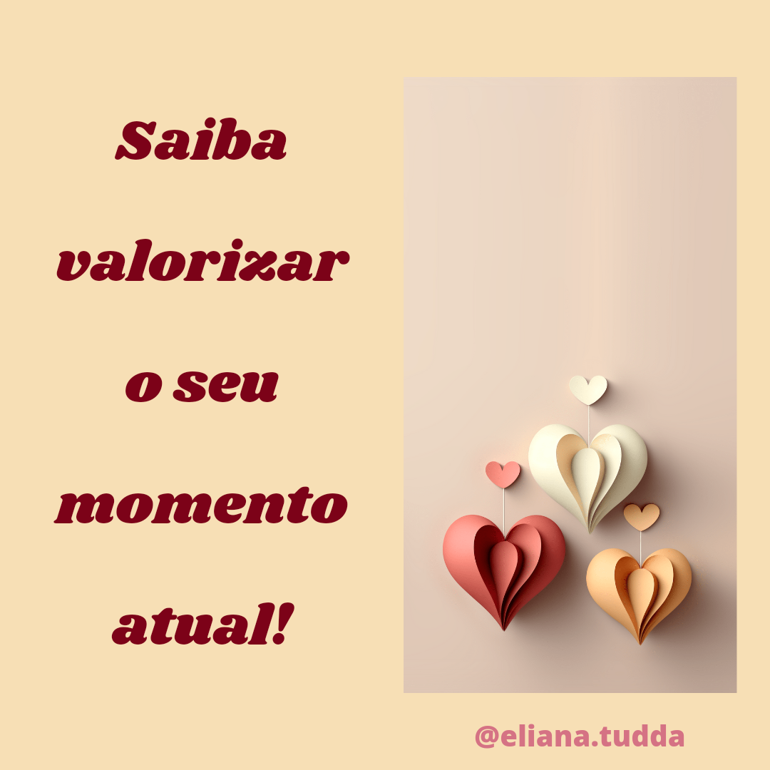 Respeite e valorize o seu momento atual, o hoje, o agora. Viva todas os ciclos da sua vida com serenidade e sabedoria!